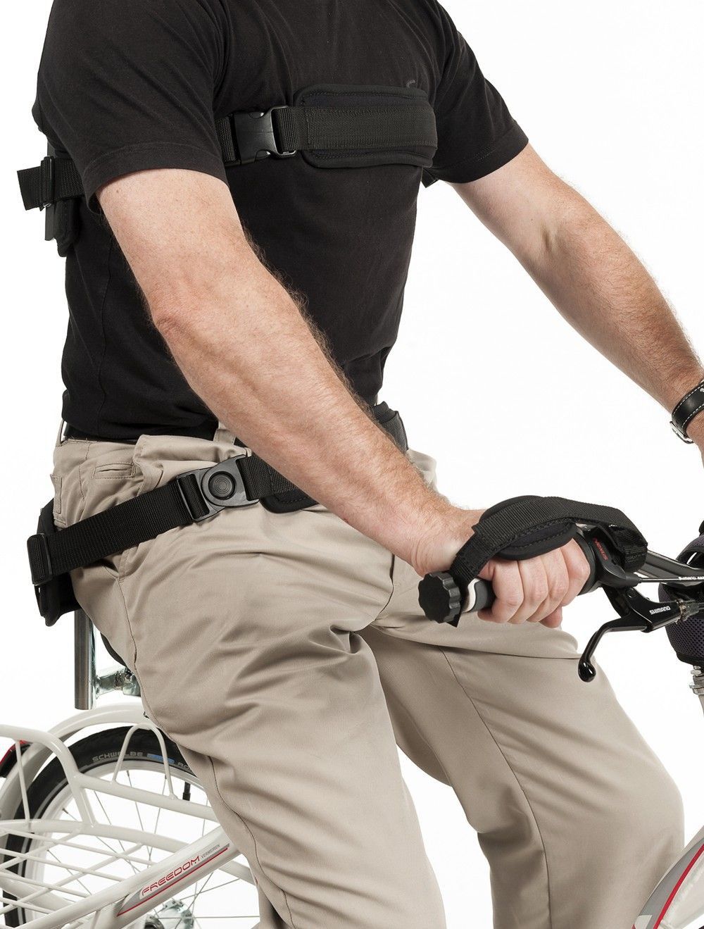 Компания Vermeiren представляет Вашему вниманию трехколесный велосипед для взрослых и подростков с ДЦП. Прогулка на велосипеде - одно из лучших средств для реабилитации людей с церебральным параличом. Данный велосипед разработан с учетом всех потребностей инвалидов, у которых есть заболевание центральной нервной системы и опорно-двигательного аппарата. Велосипед сконструирован таким образом, что дает возможность учитывать потребности людей с ДЦП. Так же он оснащен дополнительными приспособлениями, которые помогут адаптировать его для пользования любым человеком. Рама на велосипеде находится на довольно низком уровне, что дает возможность достаточно просто садиться и сходить с велосипеда. Для безопасного и устойчивого вождения предусмотрен низкий центр тяжести. Езда на велосипеде для взрослых и подростков с ДЦП Vermeiren Liberty помогает развивать вестибулярный аппарат, гибкость суставов, укрепить мышцы ног, развить мышечный тонус всей спины, мобилизовать и стимулировать суставы, стимулировать работу сердца,улучшить кровообращение, а так же разработать координацию движения. Для выработки у ребенка шаговых движений тренировка на велосипеде Vermeiren Liberty хорошее решение. Колеса у велосипеда большого диаметра , поэтому он может хорошо двигаться по неровной поверхности, но при этом сохраняется равновесие и баланс в движении.